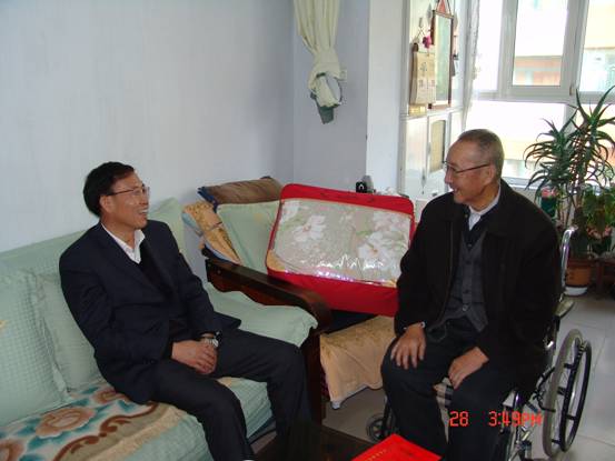 2013年1月28日,春節(jié)來臨之際,省委組織部王志明副部長在省國資委黨委副書記毛占彪、物產(chǎn)集團領導白家林、王仁芬的陪同下,走訪慰問了集團系統(tǒng)生活困難老黨員肖振東。王志明副部長親切地詢問肖振東的身體狀況、生活和家庭情況,發(fā)放了慰問金和慰問品,并希望他保重身體,愉快安度晚年。老黨員肖振東激動地表示感謝黨組織的關(guān)懷,感謝上級領導的關(guān)心!